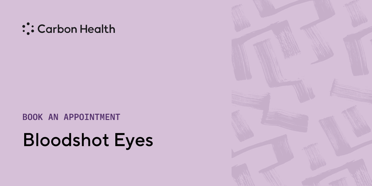 "Red eyes", or bloodshot eyes, occurs when blood vessels in the eye become inflamed or irritated. Allergies and pink eye are common causes of this condition. Bloodshot eyes normally go away on their own but if it is not, schedule a visit to a nearby Carbon Health to get treatment.