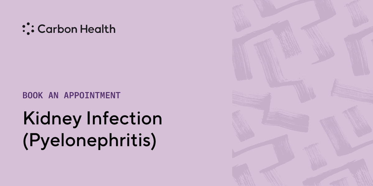 Kidney infections occur when certain urinary tract infections reach your kidneys. It's characterized by symptoms of fever, excessive urination, and pain in the kidneys or lower abdomen. Kidney infections require treatment by a medical professional, so schedule a visit with Carbon Health if you have these symptoms.