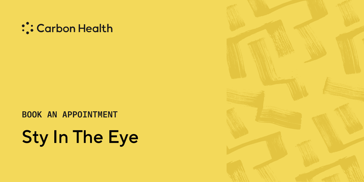 A 'sty in the eye' is an inflamed pimple or abscess that forms in or on the eyelid. They can be painful but normally fade away on their own. Do not attempt to pop a sty, as this can cause an infection in the eye. If your sty does not go away within a week, visit a nearby Carbon Health to treat it.